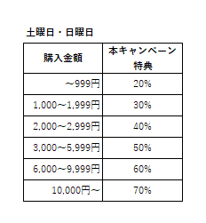 大型キャンペーン開催中は、定例キャンペーンが休止になる(重複適用されない)こともありますのでご注意ください。